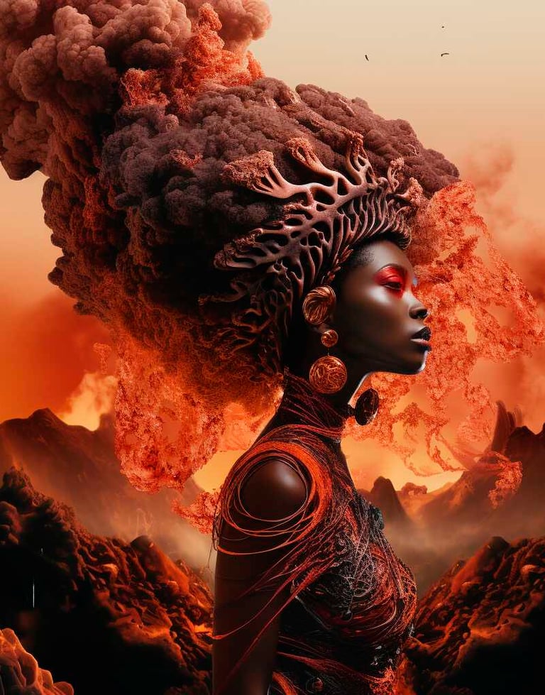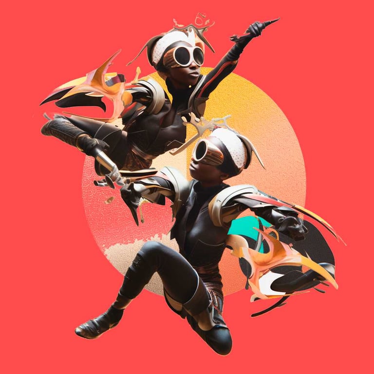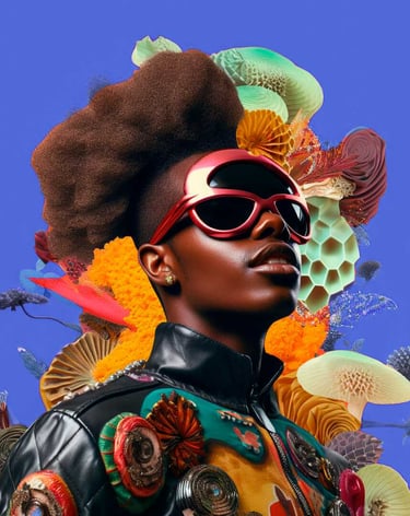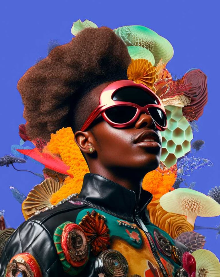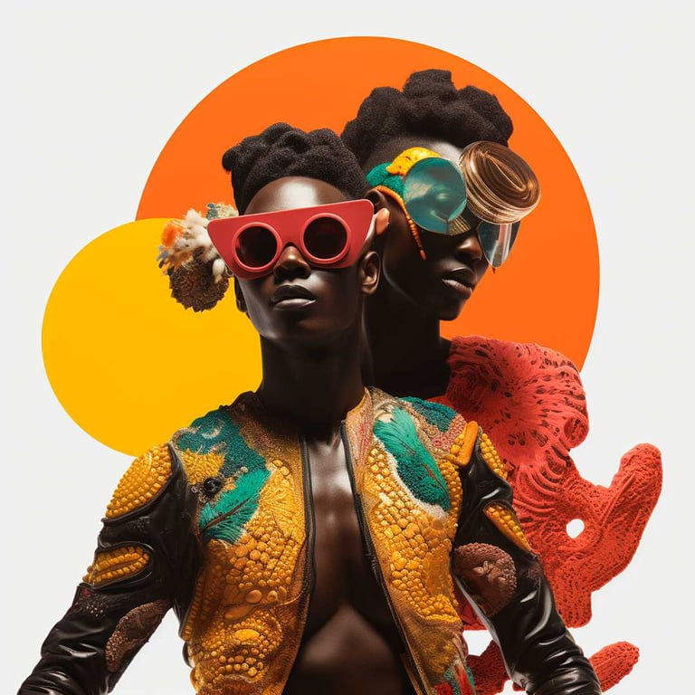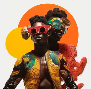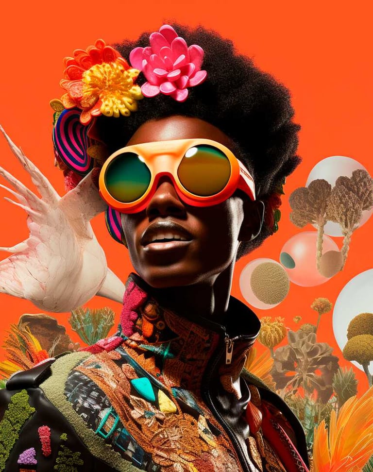 Afrofuturism project in multilingual languages. Creative process based on analog collage image from the Afroprogenie series plus text prompts on midjourney
