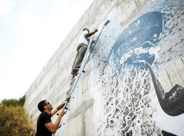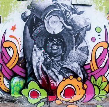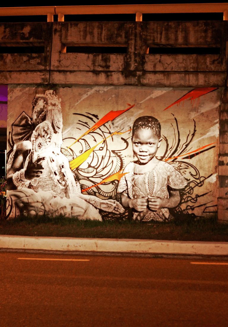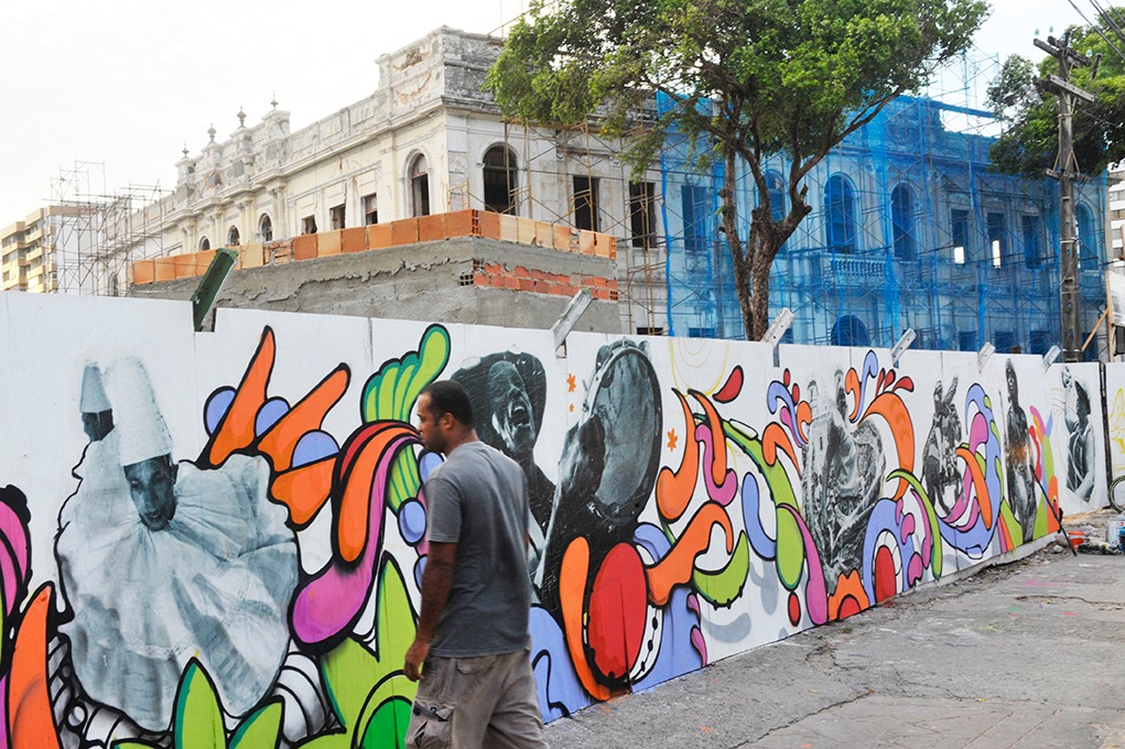 street art project with a mix of techniques between collages (lambes) and graffiti. Experience of artists André Chagas and Lucio Telles with a theme on the Traditional Popular Culture of Northeast Brazil